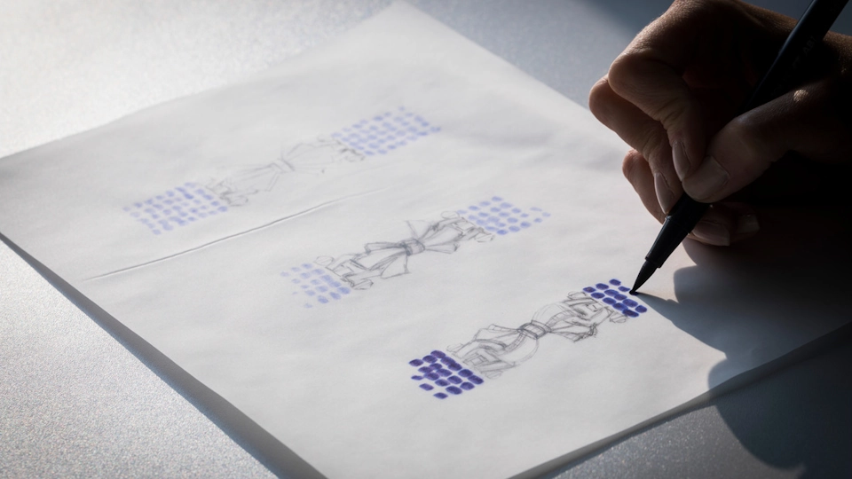 Il/elle imagine à travers un dessin de nouvelles créations à partir d'un thème donné par le Directeur artistique de la Maison. Il s'agit de la première étape du processus créatif.