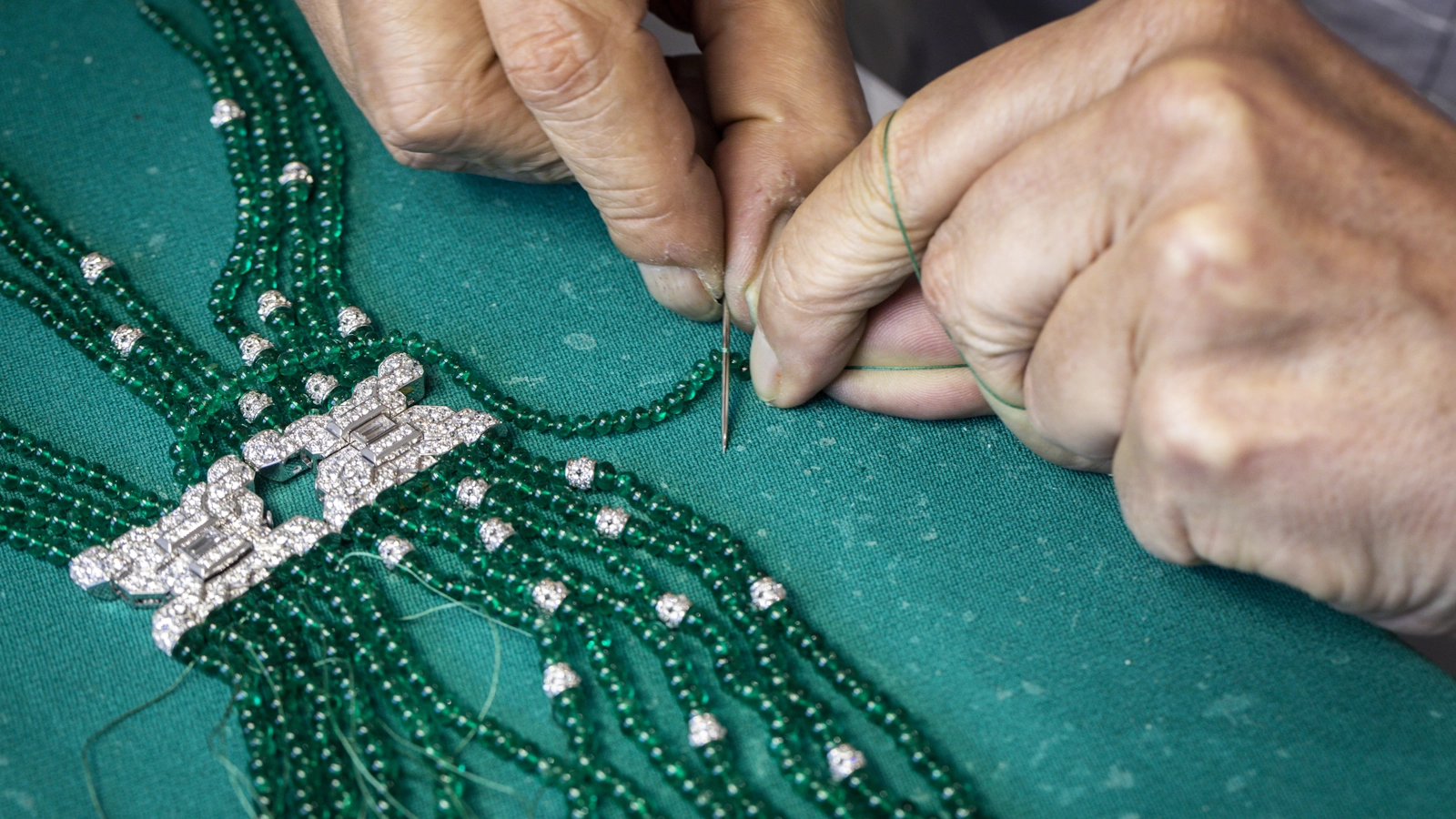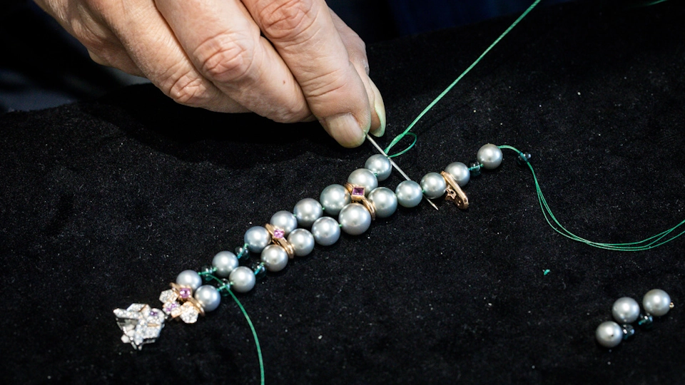 “L'un de mes plus beaux challenges est un collier trois rangs. Quand il y a plusieurs niveaux, il faut faire en sorte que le rendu soit harmonieux. Ce n'est parfois pas facile de respecter les écarts. C'est alors une grande satisfaction quand on voit la pièce assemblée !”